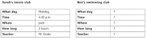 Yêu cầu của bài này là trao đổi thông tin cùng 1 thí sinh khác. Dựa trên thông tin được cho, thí sinh sẽ hỏi và trả lời. Các câu hỏi liên quan đến thông tin của một người khác.