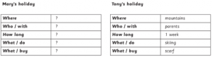 – Holiday / Where? ————->> Where does he go?