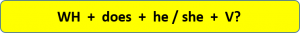 – Wh + does + he / she + V?