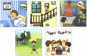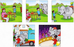 The Part 3 task involves candidates telling a simple story based on five pictures, and candidates will benefit from practice in telling similar simple picture stories. However, examiners are not looking for evidence of storytelling skills. Candidates are only expected to say a few words about each picture in the sequence, without necessarily developing these comments into a narrative.
