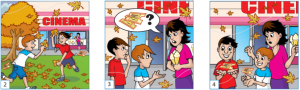 It’s a windy day. Charlie and Jack are going to the cinema with Mum. Mum is giving them their tickets. She is saying “Don’t lose your tickets!”