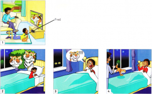 It’s called ‘Fred and the Tiger’. Just look at the pictures first. Look at the first one.